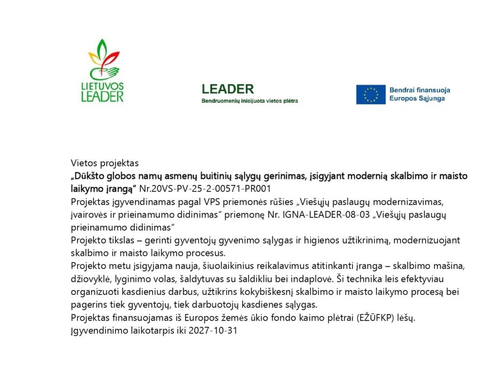 Projekto veikla: Dūkšto globos namų paslaugų gerinimas.